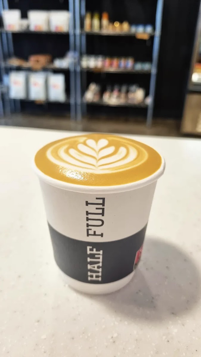 The menu leans into approachable, satisfying options — sandwiches like the ham and cheese are especially popular, alongside a range of other lunch choices from pie to sausage rolls and smoothies. There’s a noticeable focus on fresh, well-made food that complements their coffee well, which has a solid reputation in town. Those who enjoy brewing at home often pick up bags of Half Full’s beans, speaking to the consistent quality behind the counter.